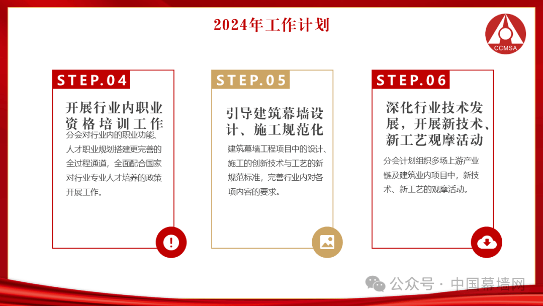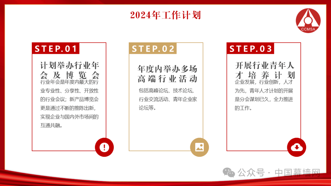 2024年分会积极开展铝门窗幕墙行业的全面工作,坚持高质量发展,紧抓时代特色,以行业企业需求为核心,以平台性、公允性、公开性为推动,开创中国铝门窗幕墙行业现代化的新局面。坚定不移的以“二十大”精神为指导,实施四轮驱动策略,推动行业高质量发展。根据国家总体方向,用“保险服务、双碳指导、绿色认证和清洁能源”四项举措,把全行业推向高质量发展的快速道。